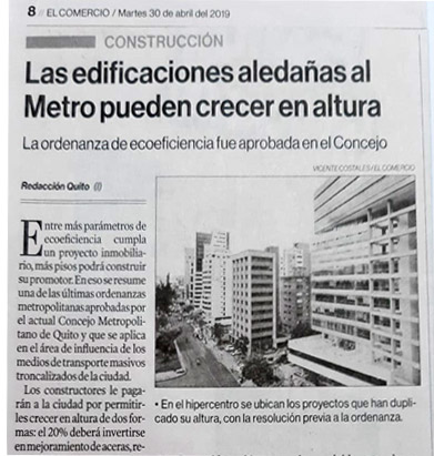 • La planta queda a 1 cuadra de la parada multimodal del Metro de Quito en una zona que tiene un gran potencial de expansión futura. En esa zona habrá mucha construcción de vivienda y creación de múltiples negocios.